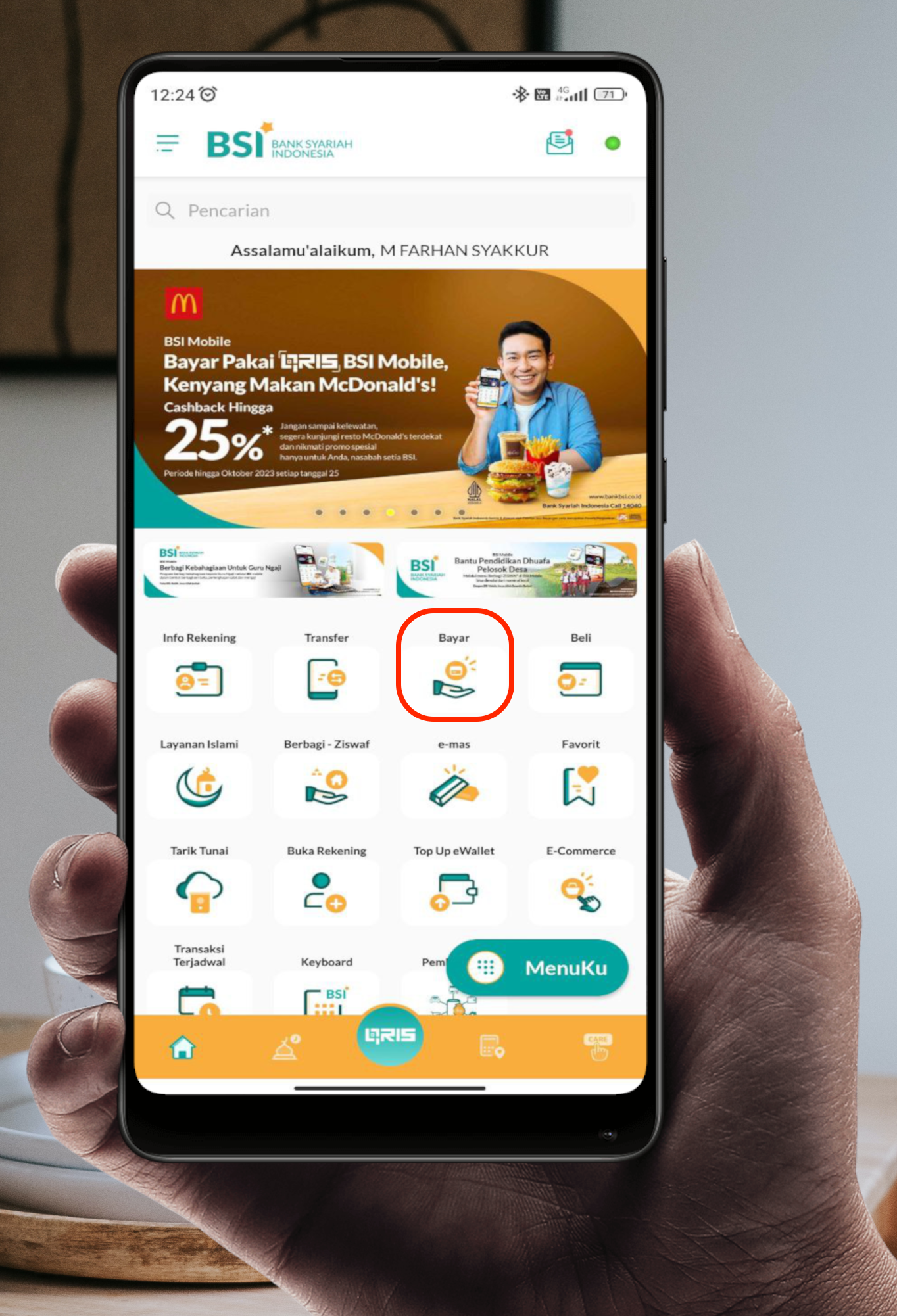 Buka aplikasi mbanking BSI dan pilih menu “Bayar“.